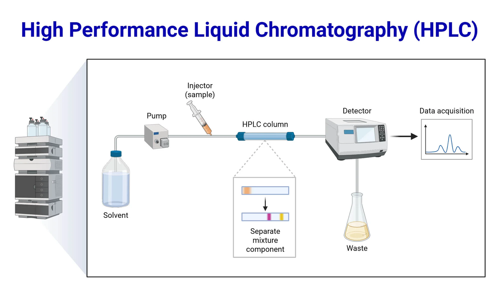 An HPLC system consists of several essential parts that work together to ensure precise analysis: